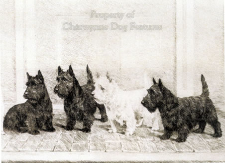 Those epic words by Sydenham Edwards, in his ‘Cynographia Britannica’ of 1800 tell you more about the terrier tribe than some books with 100 pages on them. He has succinctly captured their role, their nature, their value and their soul. Just over two centuries before him, the Cambridge scholar Dr Caius had listed them as part of the hound family and suggested their name came about ‘because they (after the manner and custom of ferrets, in searching for conies) creep into the ground, and by that means make afraid, nip, and bite the fox and the badger…’ He wasn’t scholarly enough though to ponder whether the word ‘terrier’ comes from the French word ‘terre’ (earth) or the word ‘terrere’ (to frighten), from which our word terror derives; both have Old French and Latin origins. ‘Terrors’ would provide a much more suitable word origin for such a feisty group of canines! And they do frighten underground prey. Thirty years before that, in 1543, Dr Still had composed a poem, which read: ‘Body and limb go cold, and stressed that their boldness was a feature even then. A century later, Nicholas Cox, in his ‘The Gentleman’s Recreation’ of 1667, described them as of two sorts, one with legs more or less crooked with short coats and another straighter in the leg and with long jackets. Another century passes, and we find Daniel, in his ‘Field Sports’ writing: “There are two sorts of terriers, the one short-legged, long-backed, very strong, and most commonly of a black or yellowish colour, mixed with white; the other is smooth-haired and beautifully formed, having a shorter body and a more sprightly appearance, is generally of a reddish-brown colour, or black with tanned legs.” Both were relying on French descriptions of Basset Hounds, as did Turberville, Blome and their followers. The authentic voice of the British terrier-men was not being heard, mainly because they did not come from the educated or monied classes. In his book The Dog of 1880, ‘Idstone’ records, when recounting Dr Caius’s description of terriers: “These, doubtless, were the stout sort of Terriers for which, as fox killers, James I. wrote to his friend the Laird of Caldwell, naming the Earl of Monteith as having good ones of the kind; and which sort were generally accepted as good from 1677 downwards, bred without much attempt at refinement, and they remained simply crook-legged, hairy, vermin-dogs, until it was deemed requisite to establish something neater and more pleasing to the eye in connection with the handsome and high-mettled Foxhound.” There is more than a hint here of terrier-men going entirely for performance rather than beauty of form, perhaps lacking the means to indulge in handsomeness for its own sake. The first reliable description of variety in our terriers is provided by Taplin in his ‘The Sportsman’s Cabinet’ of 1803: “Terriers of the best blood, and most determined ferocity, are now, by the prevalence of fashion, bred of all colours: red, black (with tanned faces, flanks, feet, and legs) and brindled sandy; some few brown pied, white pied and pure white; as well as one sort rough and wire-haired, the other soft, smooth, and delicate, the latter not much inferior in courage to the former, but the rough wire-haired breed is the most severe biter of the two.” It’s significant that no description of a terrier, down the ages, has been deemed complete without mention of the terrier-spirit, the combative attitude of this group of dogs. I always think of terriers in four sub-groups: the basset/dachshund type as exemplified in the Dandie Dinmont, the Skye and indeed some so-called Jack Russells; the Beagle or small scenthound type as in the Fox Terrier, Manchester, or the Pinscher breeds; the ‘griffon’ or coarse-haired type as in the Border, Lakeland, the terriers of Scotland (less the Dandie and Skye), the Irish, Sealyham, Airedale, the Schnauzer varieties, Kerry Blue, Wheaten and perhaps the Smoushond of Holland; and then the hybrids, the Bedlington, the English White (that was) and the Bull Terriers. It is of interest that the same factors which apply to the inheritance of scenthounds apply to wire and smooth-haired Fox Terriers. A narrow head is dominant over the broader hound-like head. The sharp nose is dominant over the blunt nose; wire hair is dominant over short hair and the short legs of the Dachshund, Basset Hound and Scottish Terrier are (incompletely) dominant over the normal longer legs of the Fox Terrier. The colour of the Dachshund, whether wire, long-haired or smooth, is determined by the same determiners which affect scenthounds. In 1916, Wellman wrote of experimental crosses between Fox Terriers and Basset Hounds in which the vast majority of the progeny were black and tan and short-legged. From these facts it can be seen that in time it would not be difficult to produce a narrower-headed, sharper-muzzled, shorter-legged, wire-coated earth-dog from a hound origin. The terrier breeds are however likely to have more than just a hound background. As Darwin himself once wrote: “A breed, like a dialect of language, can hardly be said to have a distinct origin. A man preserves and breeds from an individual with some slight deviation of structure, or takes more care than usual in mating his best animals and thus improves them…When further improved by the same slow and gradual process, they will spread more widely and will be recognised as something distinct and valuable, and will then probably first receive a provincial name.” In such a way did we develop our Rothbury, Manchester, Aberdeen, Reedwater, Glen of Imaal, Patterdale, Norfolk, Poltalloch, Clydesdale and Yorkshire terriers. The root stock of many being the old rough-coated black and tan common terrier of Britain, used by many hunts before hound-marked dogs became fashionable. It is not wise to regard the many nineteenth century writers on dogs as authorities on terriers. Firstly