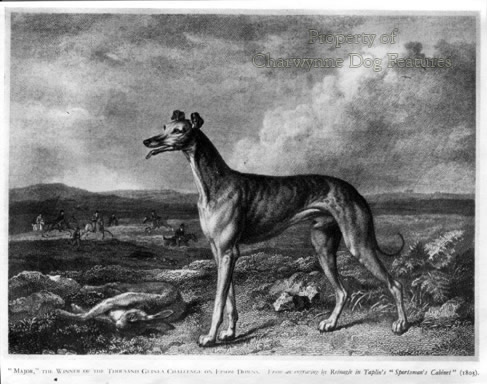 Those words of Julian Grenfell, in his poem "The Black Greyhound", one hundred years ago, convey at once the speed, grace and power of the sighthound breeds. Many of these breeds are glamorous, like the Afghan Hound, physically beautiful, like the Saluki, aristocratic, like the Borzoi, and seemingly gentle-natured, like the Deerhound. But they were designed and then bred to hunt not just to attend fashion models on location for photo shoots, which often seems to be a favoured employment for them in recent times. I have no criticism of that but I am concerned that such attractive breeds can end up being valued only for their looks and their spiritual needs overlooked. Their instinct to chase and catch other animals too needs to be acknowledged. These are dogs designed more for a cat-chase than a catwalk! Some years ago, I lived near a well-meaning lady who rehomed two racing Greyhounds. They were delightful dogs and I support her kindness and compassion. She looked puzzled when I warned her that they needed retraining if exercised off the lead, because the only world they knew was chasing small furry moving objects. Her two new pets appeared so gentle, so unaggressive and so shy that she relaxed, a bit too much. A tradesman left a sidegate open one day and her retiring retired Greyhounds got out--and killed two cats and savaged a Dachshund within half an hour. The poor lady was devastated; but whatever their disposition, these two dogs were only doing what their inbred instincts told them they should be doing. Some years before that, I used to walk to work in London through St James's Park and often passed a lady walking her beautifully groomed Borzoi. The hound was very well trained, never pulled on the lead and seemed to ignore the many wildfowl that crossed its path. Then one day a grey squirrel dared to dash across the ground moving from one huge tree to another. The Borzoi shot forward so strongly and unexpectedly that the lady couldn't hold him and the grey squirrel had a nasty surprise but met a quick end. The lady was distraught, saying that the dog had never even seen a grey squirrel before. Her chosen breed was however a hunter, one bred for centuries to catch and kill. For all their elegance and reticence all sighthounds were designed to hunt and kill. More recently, a Whippet owner wrote in one of the dog papers that she had had a distressing incident in the New Forest with her dog. She had taken her dog into an official car park and let her dog out of the car for its usual walk, as she had many times before. On this occasion the dog suddenly dashed into nearby undergrowth and disappeared. The lady went after her dog only to see it seize a small deer by the hamstring after the briefest of chases. She was able to call the dog off but had to call a ranger to deal with the crippled creature, which was later destroyed. The lady was aghast at what her Whippet had done, understandably so in those circumstances. This dog had never hunted before but it had gone straight for the deer's hock. Of course, any dog can chase cats, pursue deer or ambush a grey squirrel. But a sighthound stands a better chance of succeeding than most. It isn't just sheer speed, agility comes into it as well. Nearly half a century ago I was based in Malta and had the chance to go rabbiting on Gozo. The local hunters used small bat-eared sighthounds, but in the pack was a red Whippet left behind by a departing British officer and a solid rich tan Manchester Terrier. The speed and agility of these dogs was simply breathtaking, as they negotiated dry stone walls, rocky outcrops and boulders at pace. Later I was told that dogs like these had been imported into Britain and renamed Pharoah Hounds. The Mediterranean littoral abounds with small bat-eared sighthounds resembling those depicted on ancient Egyptian artefacts. Agility matters hugely in a wolf hunt too, for the wolf is a daunting adversary. Stamina has to accompany speed and agility too. In the Middle East I have watched two Salukis race out of sight over ground which would have broken some dogs' legs and over a distance which would have taken the pace out of many hounds. I was not surprised when a lurcher breeder once told me that the greatest benefit from the blood of the Saluki came in the feet. The Afghan Hound also needs remarkable feet to cope with the terrain in its native country. We may not want our Afghans and Salukis to sprint over rocks or our Borzois to hunt wolves, but they came to us as breeds developed for a function and with an anatomy which allowed them to perform that function. We ignore that original function and we imperil the breed. With that in mind it was worrying to read recent show critiques on the Afghan Hound. At Crufts in 1999, the judge remarked: "...I do feel attention must be concentrated on the shoulder conformation, the true angle of well laid back shoulders, plus a good length of upper arm, bringing the forelegs well under the body, thus giving good forward movement and return, this is sadly missing in most Afghans." Similar comments were made by the LKA judge that year: "...front assemblies i.e. correct angulation in upper arm and shoulder, and in balance with each other, ought to be watched." The judge at the Southern Afghan Club championship show stated: "...I was somewhat taken aback by the chests and ribbing of some of the dogs...", lamenting the short rib cages. More recently, the Afghan Hound judge at the Hound Association of Scotland's show wrote: "Heads also shocked me, a number were so untypical, being heavy, unbalanced and coarse, not a hint of Eastern expression!" But even more worryingly, the judge at the East of England Afghan Club's 2000 championship show gave this view: "I was very sad and appalled in some cases to see what is happening to our gorgeous breed. Are some people trying to make a new version..." This judge went on to mourn the lack of good shoulders and stating: "I have never seen so many straig